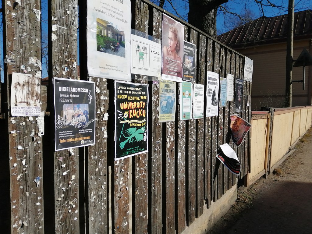 Det är ju inte alltid så vackert med allmänna ”skyltningsplatser” så ingen städar bort gamla nitar och pappersrester, men det är vad det är. Äkta vardag.