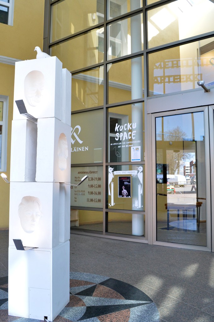 Konstverket, den fina pelaren, har gjorts av Tero Maksimainen, med ansikten som lyser fint.