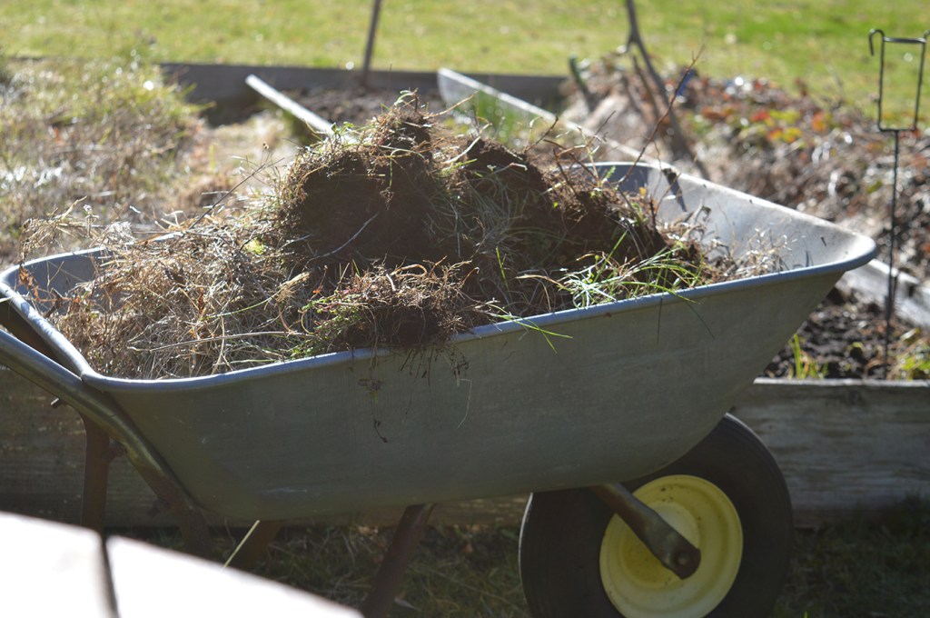 Vi fortsatte kratta och räfsa runt lite. Rev bort fjolårsgräs och rester av plantor.