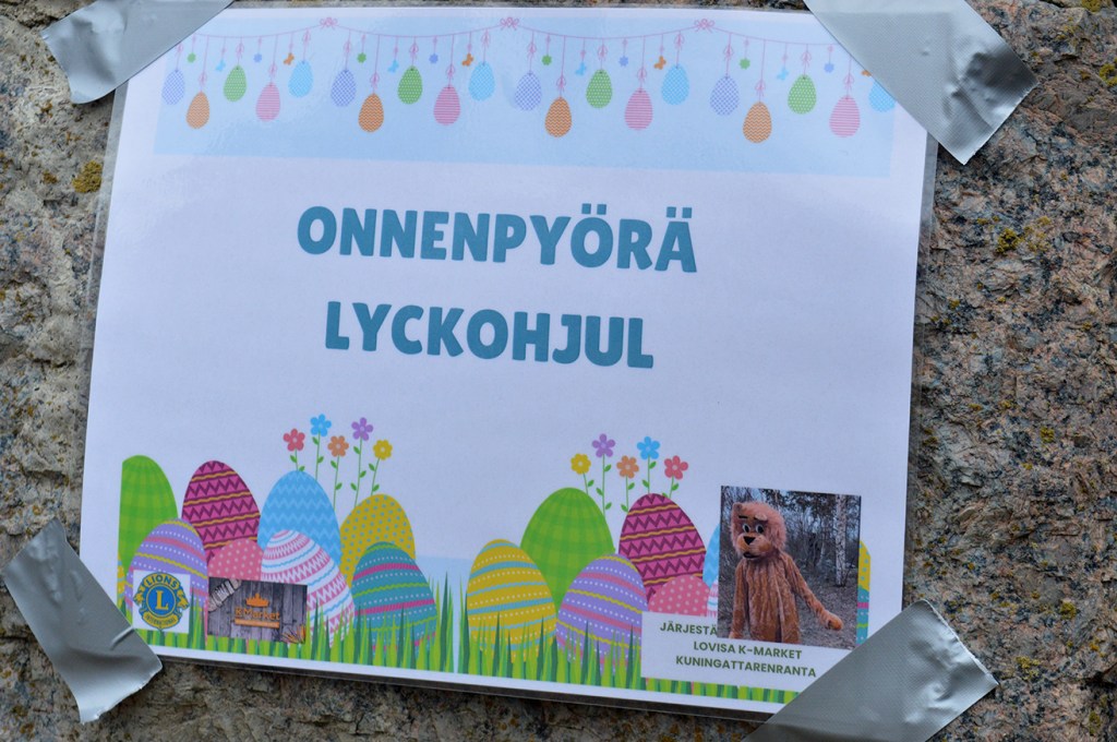 En trevlig hemgjord skylt från påskens äggjaktsjippo på Bastion Ungern. Man tager vad man haver då man tillfälligt ska fästa en lapp på en mur 🙂
