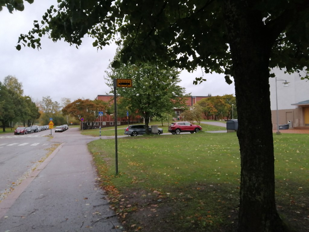 Jag närmar mig idrottshallen. Tor spelade sin tredje match i Finlandsseriens grundserie och besegrade Wolves från Pargas med 7–4. YES! Totalt antal steg i detta kalla höstväder, 2700. Jag är nöjd. Har nu alla dagar i oktober kommer över mitt mål som är 2500 per dag.