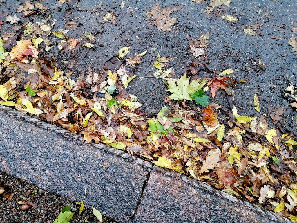 Såg en del vackra formationer av löv längs vägen. Också vackra löv som simmade i vattenpölar. Men det här blev sedan enda fotot från färden 🙂