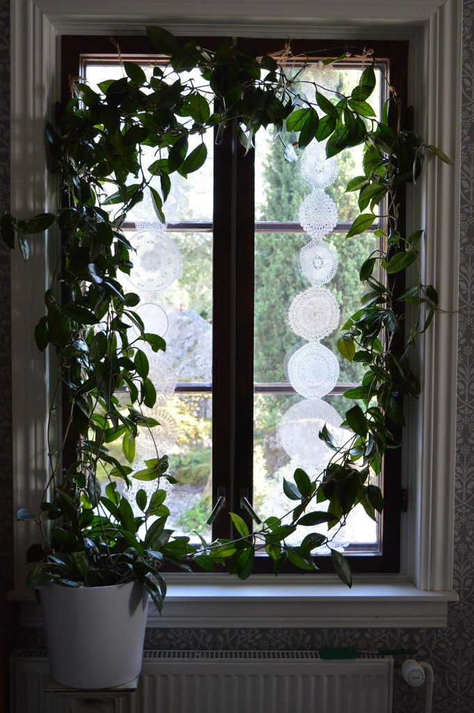 Vackert inramat, inte sant? Det här är något jag på sikt försöker jobba med här hemma också. Jag har många grönväxter och hittar säkert med tiden bra platser för dem alla. De har redan nu flyttat lite hit och dit 🙂 Min dröm är att få en hylla som hänger framför något av fönstren, där många små krukor, kanske en del med örter, och även glasföremål med sticklingar i sig, får plats.