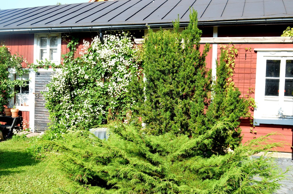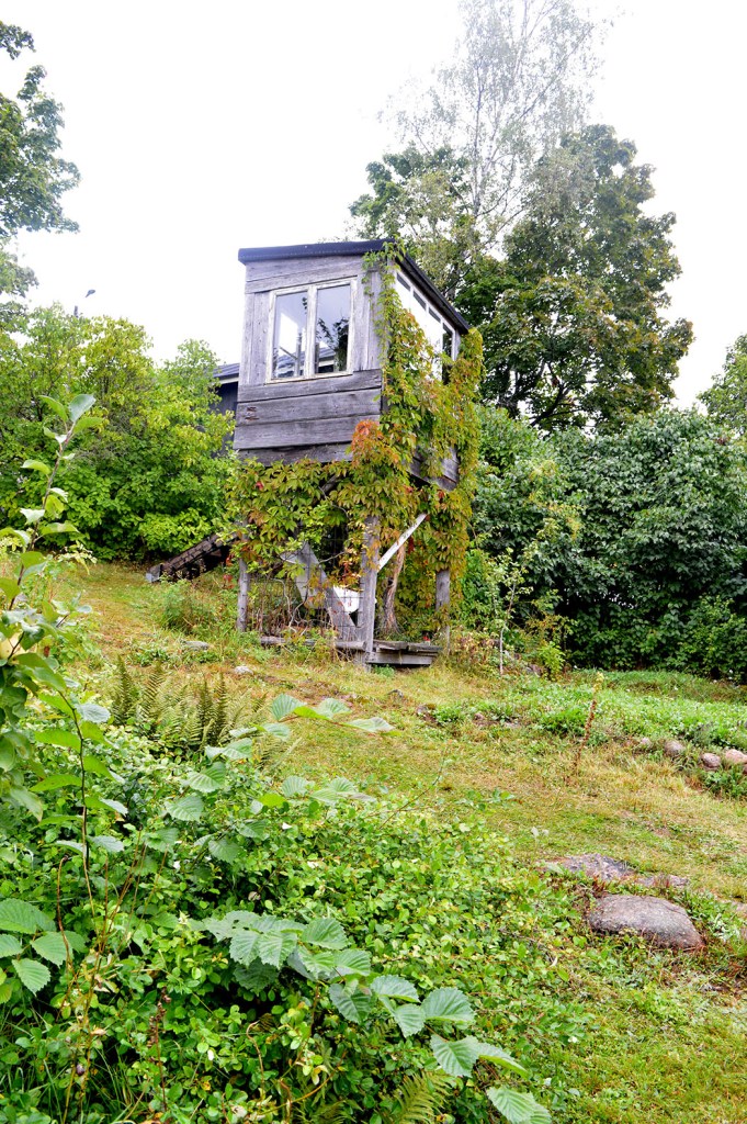 Här är det ingen som bor, och huset är inte direkt historiskt 😀 Men det är en ”lekstuga” på Vackerbackas tomt, ett lite annorlunda lusthus eller vad man vill kalla det.