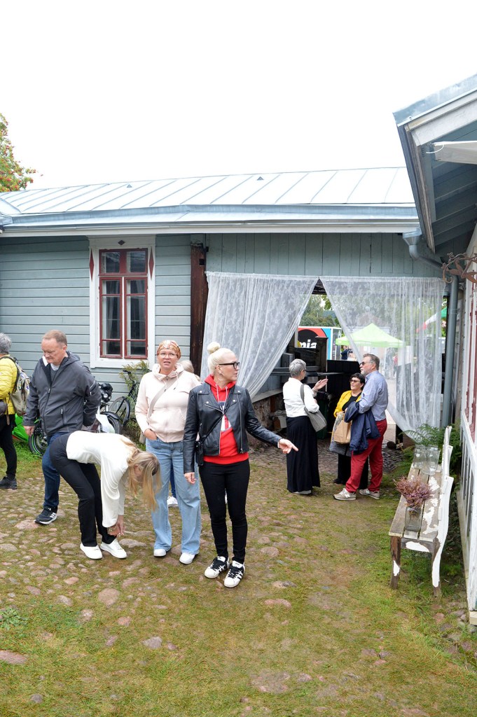 Åter dags för ett av årets mest efterlängtade evenemang, Lovisa Historiska Hus! Tyvärr har det regnat hela dagen, och samma väder vänts imorgon. Men… inget ösregn. Mest disigt och duggregn och +17 grader. Stämningen är ju alltid aningen bättre med sol och värme, men det kom besökare ändå. På bilden ett av husen som är för första gången med i evenemanget, Brottas.