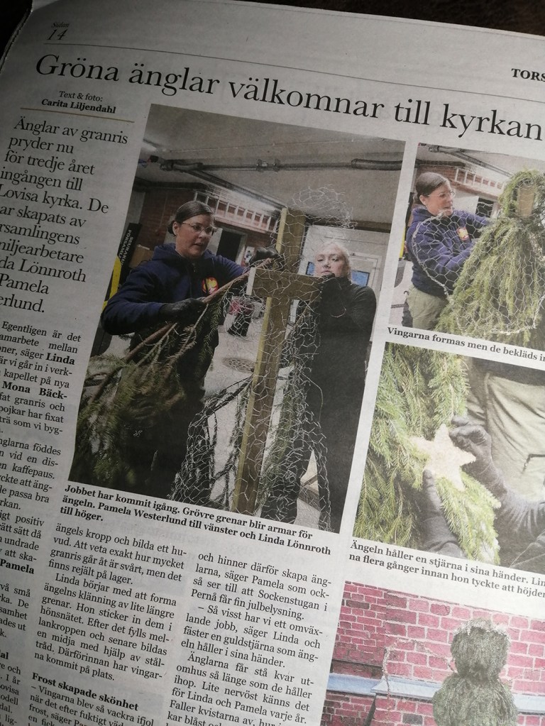 Bakom kalenderlucka med nummer 18 döljer sig i dag pappersänglar. De fanns till salu i Villa Armas som var ett av de öppna julhemmen nyligen.