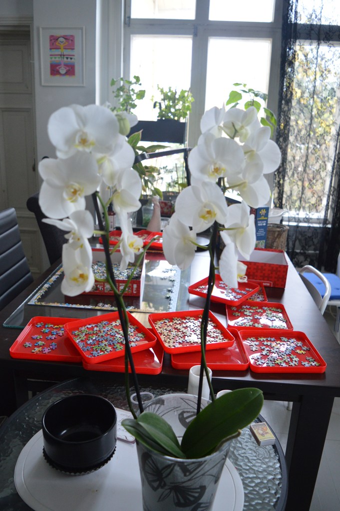 Orkidén som jag fick av grannen Pia innan jag for på läsarresan står sig fortfarande såhär fin. Förr har jag inte fått orkidéer att behålla blommorna såhär länge. Jag tror den trivs för att jag har så svalt inne 🙂