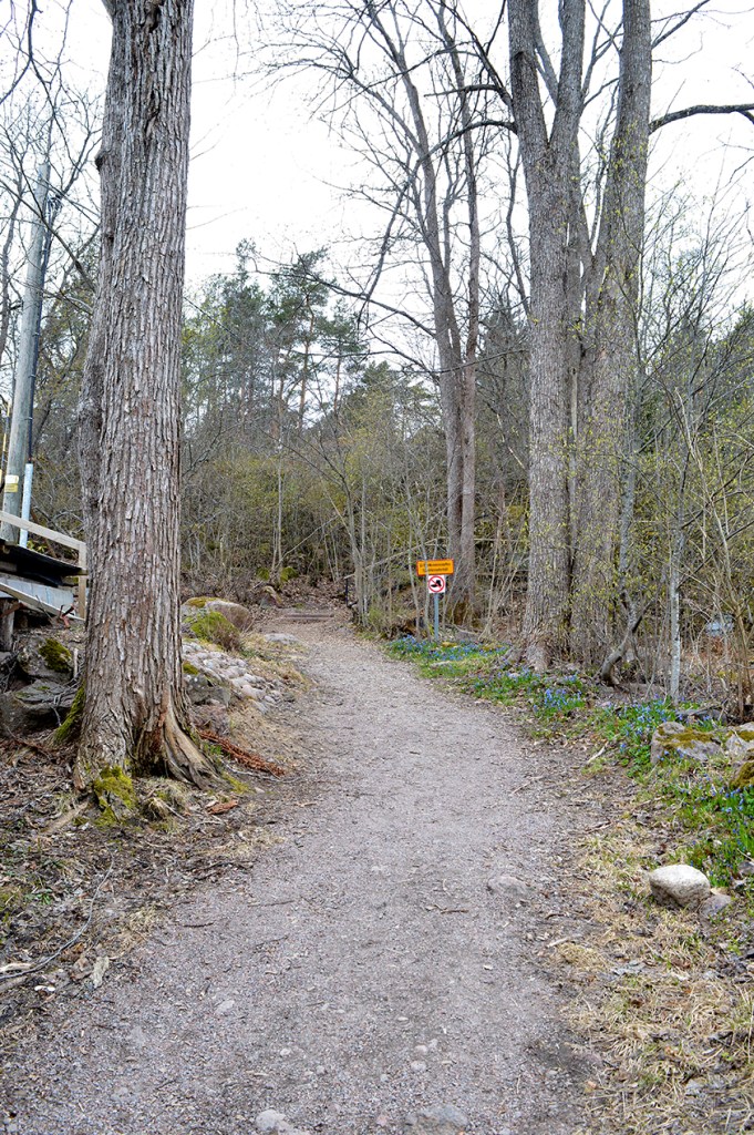 Den här skylten är mitt bidrag för i dag. Den finns vid trapporna som går upp från Backgränd till Östra Åsvägen, i en ganska brant men fin och stenig, mossbelupen miljö. Här skottas inte snö under vintrarna och i trapporna får man inte använda skor med halkskydd eftersom de snabbt skulle förstöra trappan som är byggd i trä.