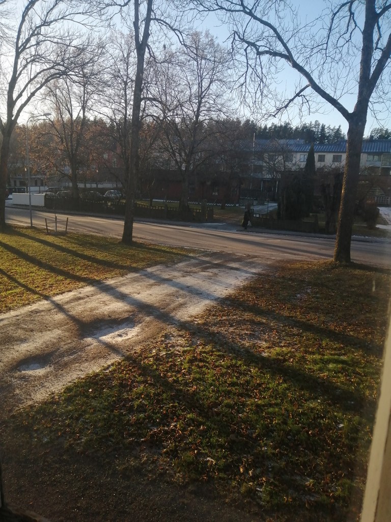 På förmiddagen bar jag med grannens hjälp in tre Ikea-kassar med ved från källaren. Bra så, eftersom det nu kom snö och ska bli några riktigt kalla nätter.