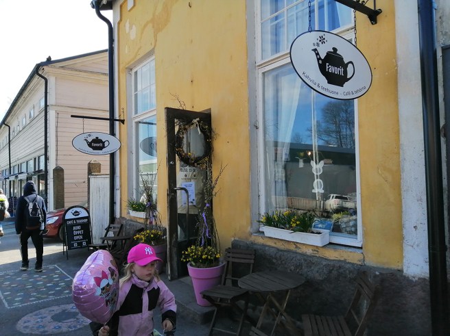En affär i gamla stan i Borgå. Ballonger och serpentiner är en del av rekvisitan många har då det firar valborg och första maj i Finland.