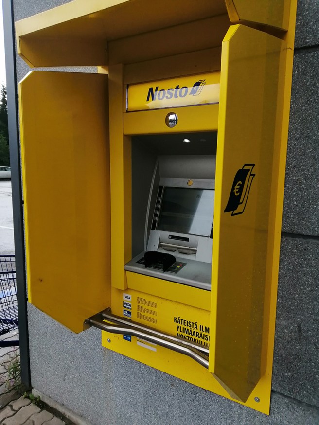 Till vänster om bankomaten, ungefär där jag står vid cyklarna, finns ingången till Apotek Kronan. Apoteket flyttade dit för ett par veckor sedan. Förr fanns här en bank, och sedan hade församlingarna sina kontorslokaler, Kyrktorget, här.