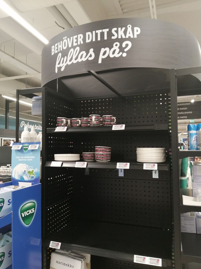 Nu är det ju faktiskt så att det är långa leveranstider på allt möjligt i vårt land. Kanske även i andra länder. Mycket beror på pandemin. Produktions- och leveranskedjor bryts då personal insjuknar. Hur som helst, i dag hittade jag på en annan plats i affären ett Marimekko-örngott som jag inte kunde låta bli att köpa. Måste ju passa på 🤣 Vem vet när hyllorna gapar helt tomma?