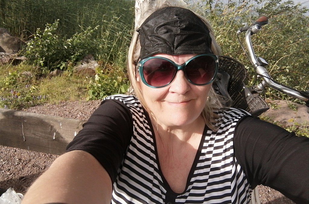 Vår vackra Lovisaviken sedd från Rosenstranden, en trevlig plats där det är lätt att njuta av naturen och ofta en svalkande bris från havet. Vackert väder har utlovats hela helgen, värmebölja rentav. I dag ska jag handla lite till min mamma och sedan träffa en väninna som jag inte har sett på länge. Hon hade läst min blogg och konstaterat att hon inte heller har något speciellt för sig idag. Hon är inte ensam då hon har barn och barnbarn, men vi ska ses på eftermiddagen och äta nåt gott vid Skeppsbron.Den här bilden väckte skratt och kommentarer då jag lade ut den på Facebook i går kväll. Jag glömde solhatten hemma men rådlös får man ju inte vara. Ett munskydd funkar ju också 🤣😂😍