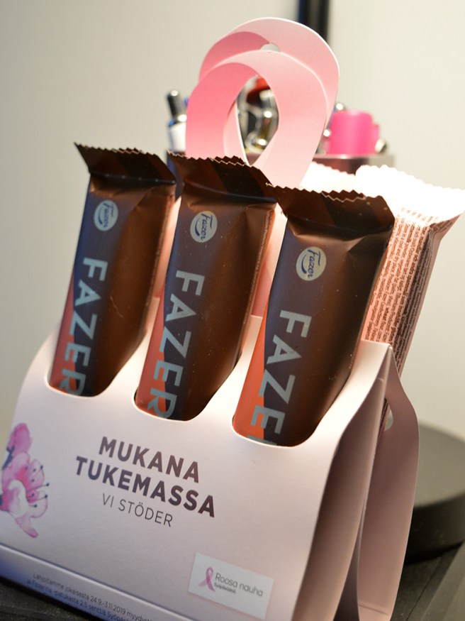 Köpte en bukett till mig själv och chokladen kom lite så där i förbifarten när jag såg att Fazer är med och stödjer Rosa Bandet-kampanjen. Två och en halv cent per paket till Cancerstiftelsen låter inte så mycket men det är bättre än ingenting. Får hoppas att många chokladstänger säljs!