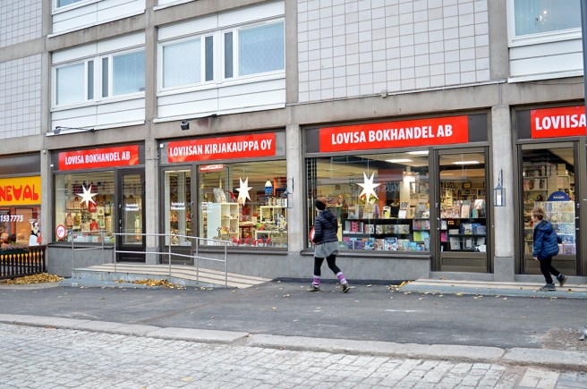 Mera julinspirerat. En krans som hänger utanför vår fina bokhandel här i stan.