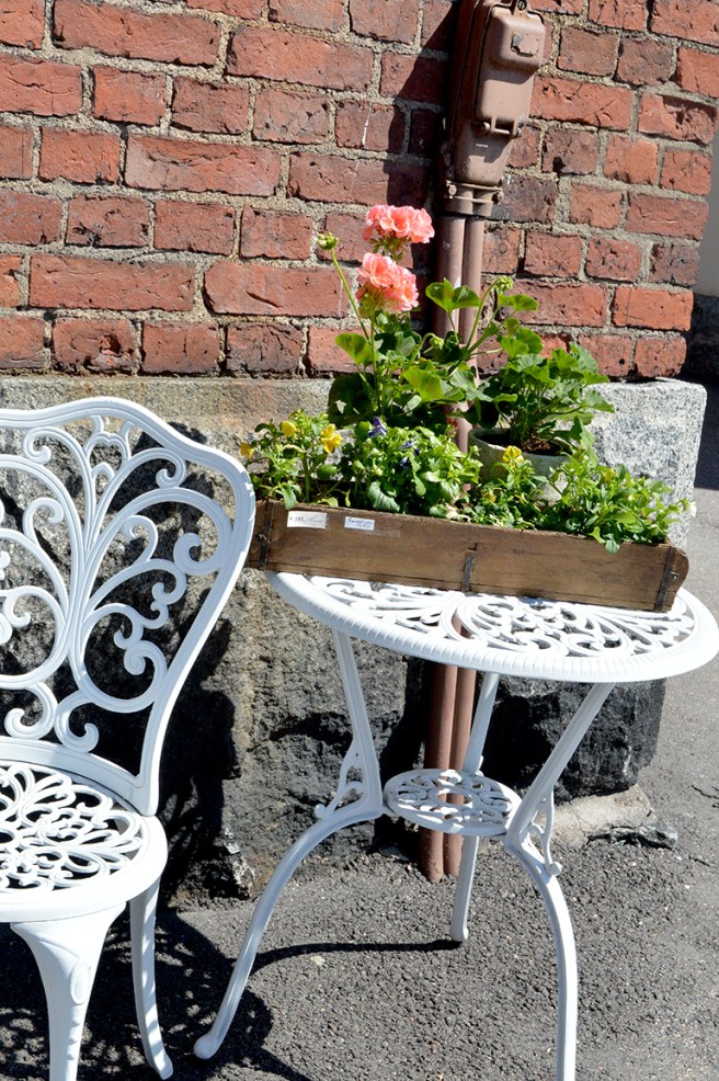 En vacker vägg och en fin viloplats utanför en affär på Ågatan i Borgå, fotograferat den 22 maj.