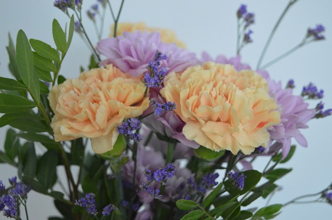 Buketten med rosor i närbild.Köpte de här blommorna åt mig själv bara för att jag tyckte den var fin. Vill gärna ha fräscha blommor i bostaden så länge jag tycker jag har råd med den vardagslyxen.