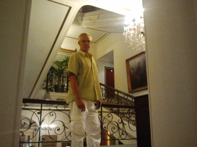 Trappan upp från matsalen till första våningen där vi bodde. Vår dörr syns uppe till höger, vi bodde på rum 112. Det var för övrigt ett nummer jag kände för att ringa då paniken växte sista morgonen…