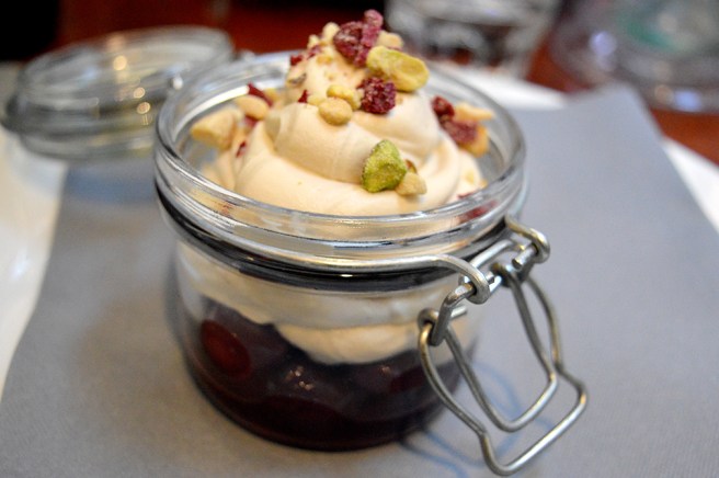 Så här serverades efterrätten, chokladmousse. Mycket mäktig och god, orkade inte äta allt.