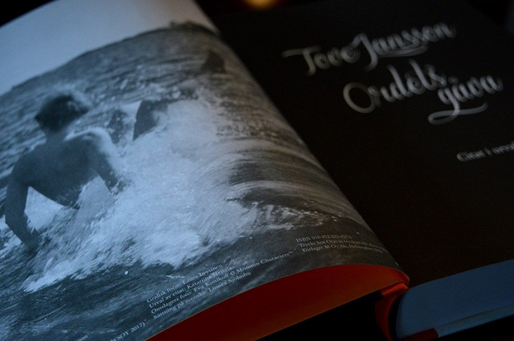 När jag ser alla citaten i den här boken tänker jag hur lite jag vet om alla Muminböcker. Jag har inte läst dem. Jag vill minnas att jag försökte då jag var barn, men böckerna tedde sig svåra och konstiga. Förstås var det så, för de riktar sig ju inte alls tills barn. Senare blev det här med Muminfamiljen så mycket annat, med alla prylar och med de tecknade filmerna.