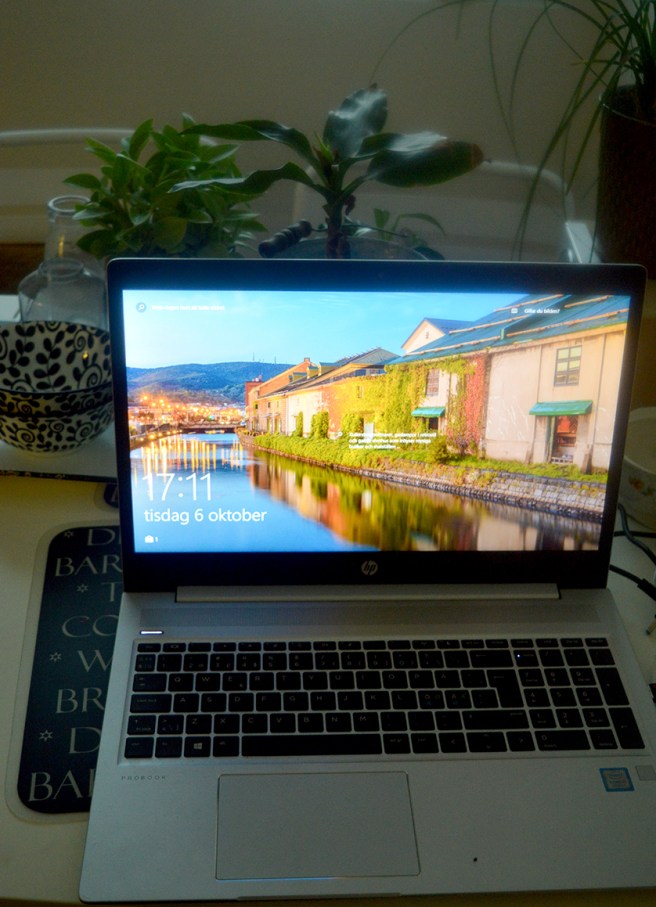 Bärbara datorn som jag inte sitter vid dagligen men jag gillar den och omgivningen.