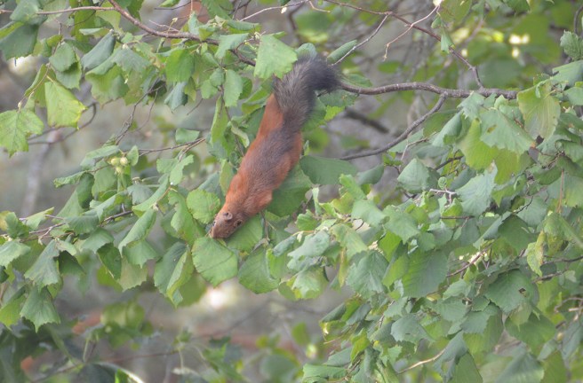 Hälsade på Inge-Maj, Bengt och Faster-Aster Inkku i går. Innan solens sista strålar försvann bakom trädtopparna hann vi njuta en stund i trädgården. Där brukar år efter år finnas en eller flera ekorrar.