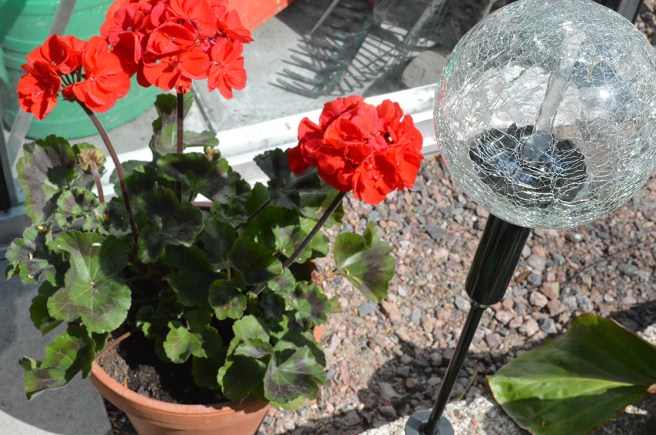 Här fanns stora växthus på gården förr. I år har maken i huset samlat tegelstenar från ett hus som ligger i närheten, och som bombades sönder på 1940-talet. Av skorstenens tegel har han byggt en gång, en del av den syns här. Ett sådant jobb att dels frakta stenarna, dels få dem snyggt på ny plats!