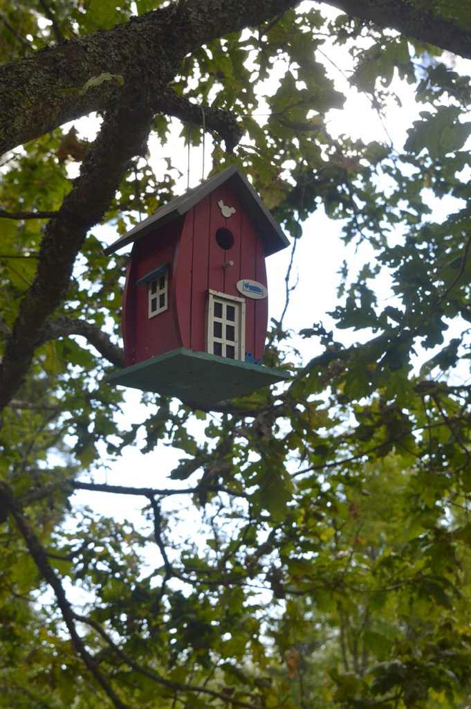 Jag tror inte att någon fågel har bo här, det skulle kanske inte vara så hygieniskt 😀 Men ett litet träd, en holk och massor av pelargoner (som inte syns här) prydde balkongen.