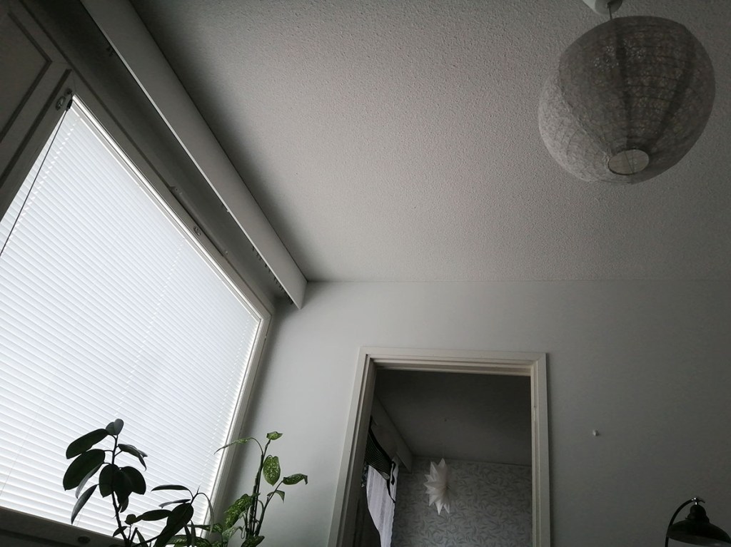 Det var den här lampan jag fick hjälp med igår. Rejäl stege krävdes och en man som gjort sånt här förr. Jag är inte höjdrädd, men det där med att balansera på en hög stege och samtidigt fästa något i taket tar jag inte längre risker med. Särskilt som knäet nu blivit bättre.