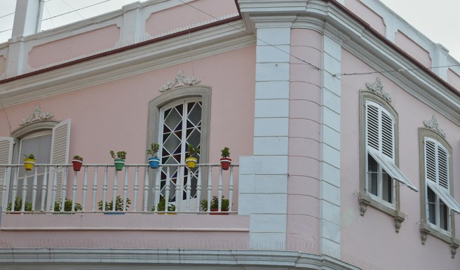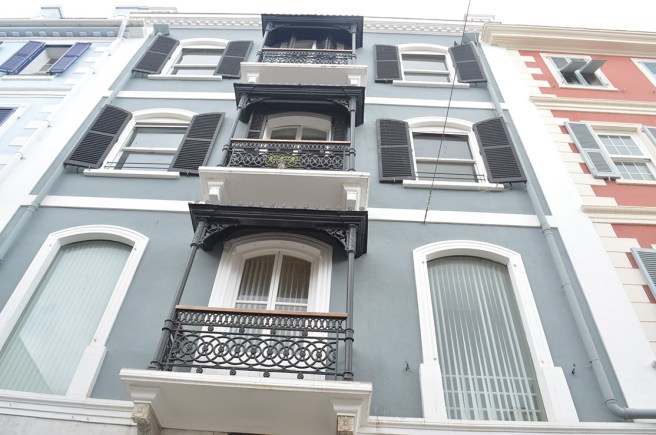 Utöver fasaden, som är så fin med såväl franska balkonger som troligen riktiga balkonger högre upp, fick jag syn på fågeln som svävar där uppe.