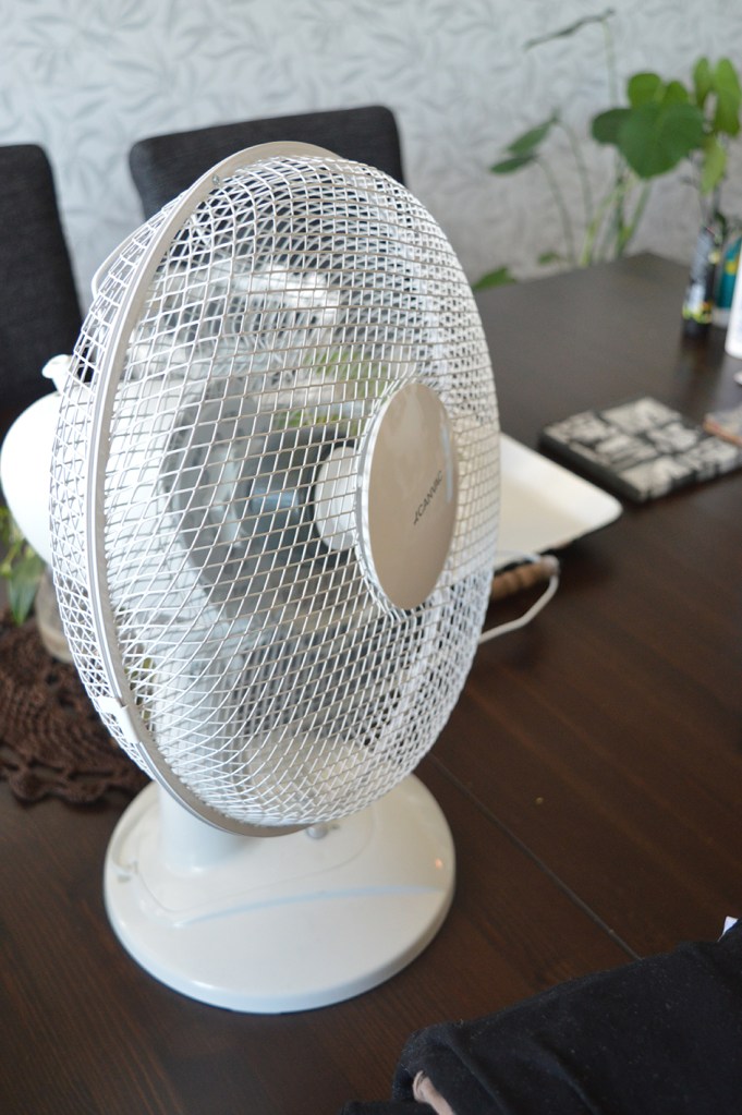 Det fanns ingen större fläkt till salu än denna men jag har sedan tidigare ett fläkttorn. Är bara rädd att den går sönder någon dag och att jag ska stå utan fläkt i hettan. För nu har de åter gått åt som smör på heta stenar, dessa blåsare.