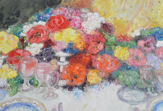 Den här blomman fick jag av svärfar, svärmor och FasterAster.Hanna hämtade rosor i kruka.Vinflaskor av Hanna, Merja och Kitte.