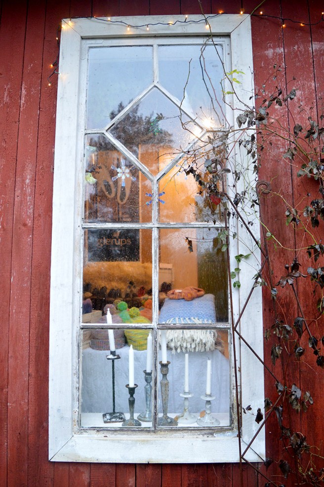 Det här blev fint tycker jag. Bredvid stjärnan i fönstret står en trägran som på framsidan har vit skinnklädsel.
