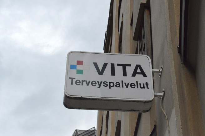 Sedan bar det av till Helsingfors, till Vita terveyspalvelut – Hälsotjänster.