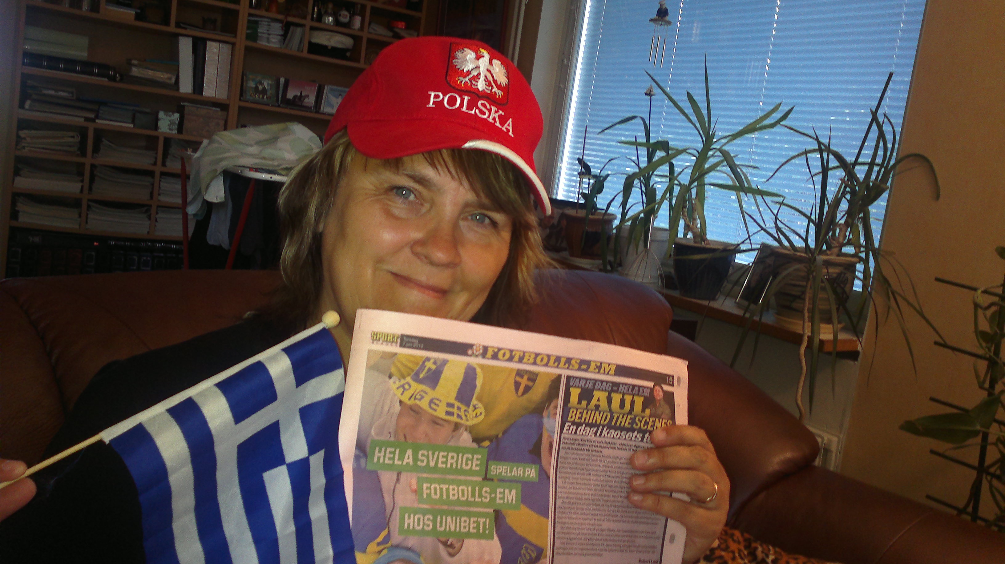 Främst hejar jag i år på Sverige för Finland är ju inte med i år heller… Och då öppningsmatchen i Polen gick mellan värdlandet och Grekland passade jag på att ha Polenmössa och Greklandsflagga.