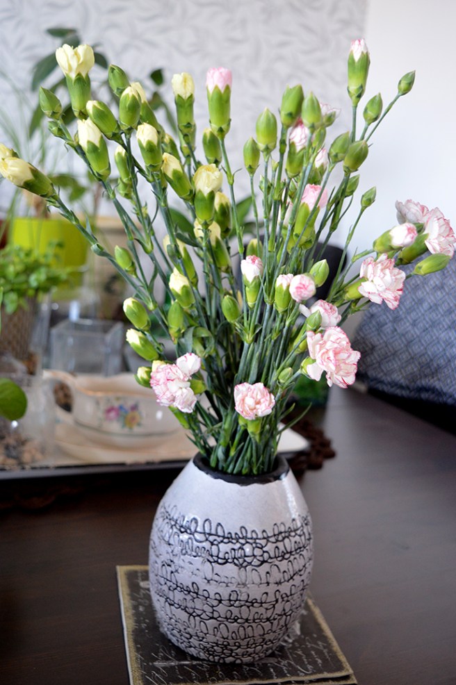 De blå blommorna, minns inte vad de heter, får först rosa knoppar som sedan blir lila/blå. Det är en blomma som håller oerhört länge i vas inomhus. Vallmon i bakgrunden trivs bäst där den är, stor och ståtlig 🙂