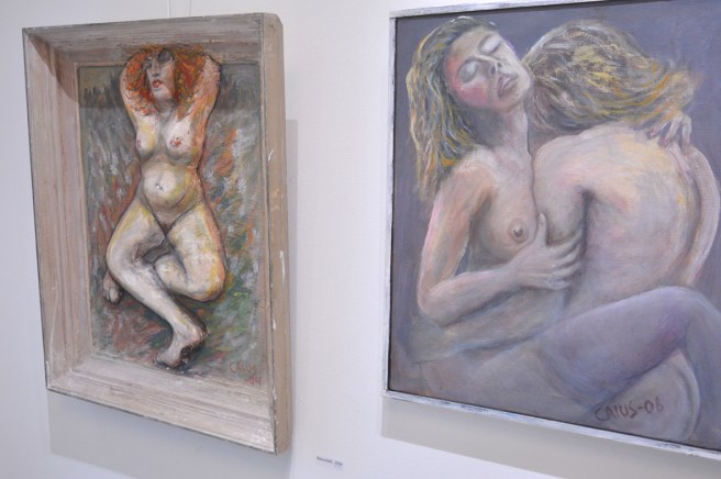 Tycker att det här blev lite roligt. Då jag besökte Galleri Theodor med Ann-Britt i lördags var där också ett par andra besökare, och dem fick jag fångade i spegeln som finns på den ena tavlan. Hur galet som helst-kategorin fick här ett bidrag 🙂