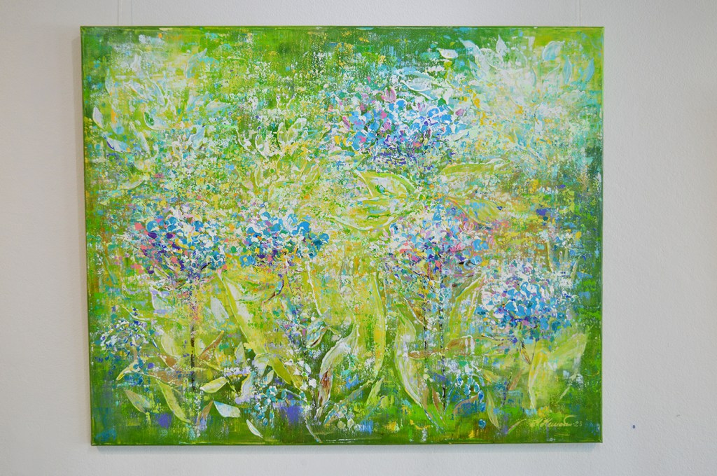En del av blommorna i min odlingslott. Mycket har jag inte behövt vattna i sommar. Även om det var mycket varmt igår så kom det en regnskur på kvällen och då är det bara grödorna i växthuset som behöver vatten. Solrosorna har kommit upp här ute, men de får sina fina blommor först senare.