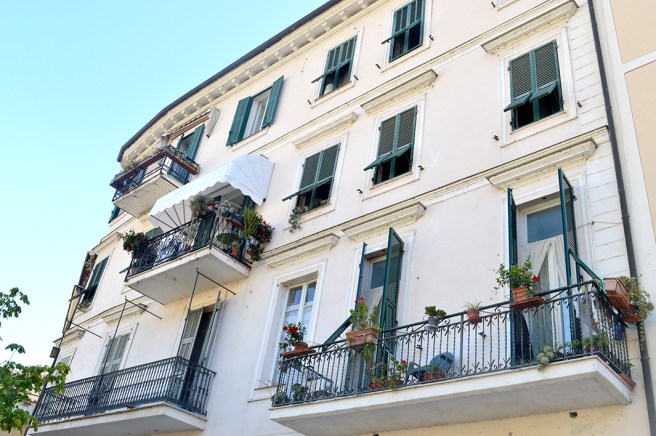 Här gillar jag balkongerna, som gärna förstås hade fått vara ännu mer grönskande.