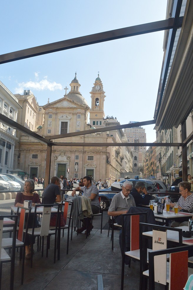 Världens första bank.Ytterligare en hamnvy.En av uteserveringarna i Genova.