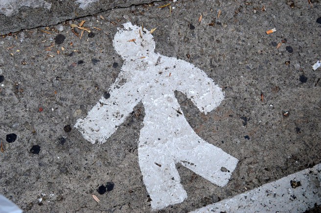 Den här figuren, som hade målats på en smal gata i Gibraltar, för att folk skulle förstå att akta sig för bilar – ser onekligen lite lost ut.