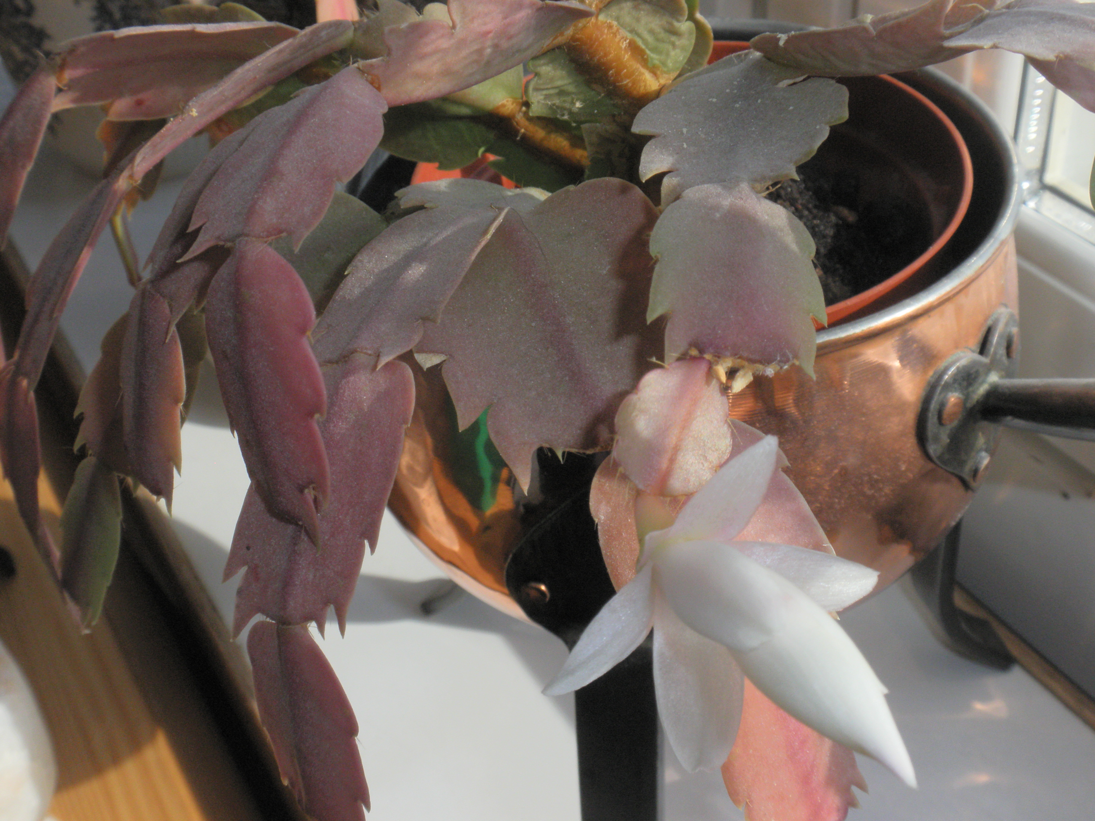 Inte kan man skylla på blomman för att den skjutit en knopp som slagit ut. Den har förstås tittat ut genom fönstret, sett all snö och tänkt nu är det dags!