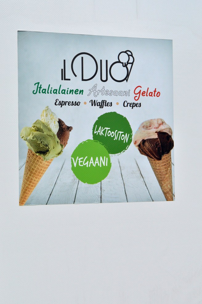 Här används lokala råvaror, allt från blommor till ostar, kött och glass. I detta fall företaget Il Duos gräddigt goda vaniljglass. Vi hoppade över huvudrätten eftersom förrätt med efterrätt var mättande nog.