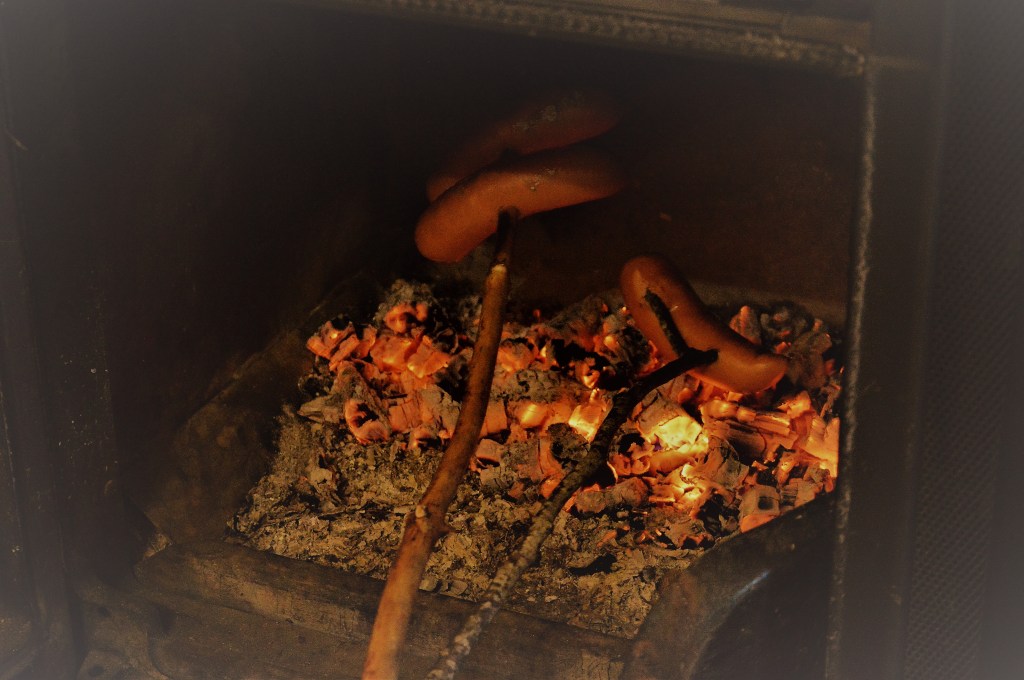 Det är höst och kvällarna och nätterna börjar bli kalla. Då är det mysigt med öppen eld i en ugn, och gott med grillad korv.