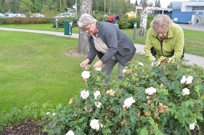 När vi lämnar Borgå sjukhus får jag syn på Ordodlaren, till vänster på bilden. Hon och ett gäng andra entusiaster höll på att rensa och fixa i rosenrabatterna där. Fram med kameran, rusa dit och säga ”jag har kommit ända från Lovisa för att ta den här bilden”, och sedan snabbt iväg igen.