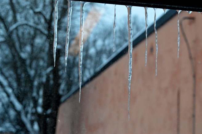 Just nu bjuder jag bara på ett fint konstverk av istappar i en buske på mammas gård.
