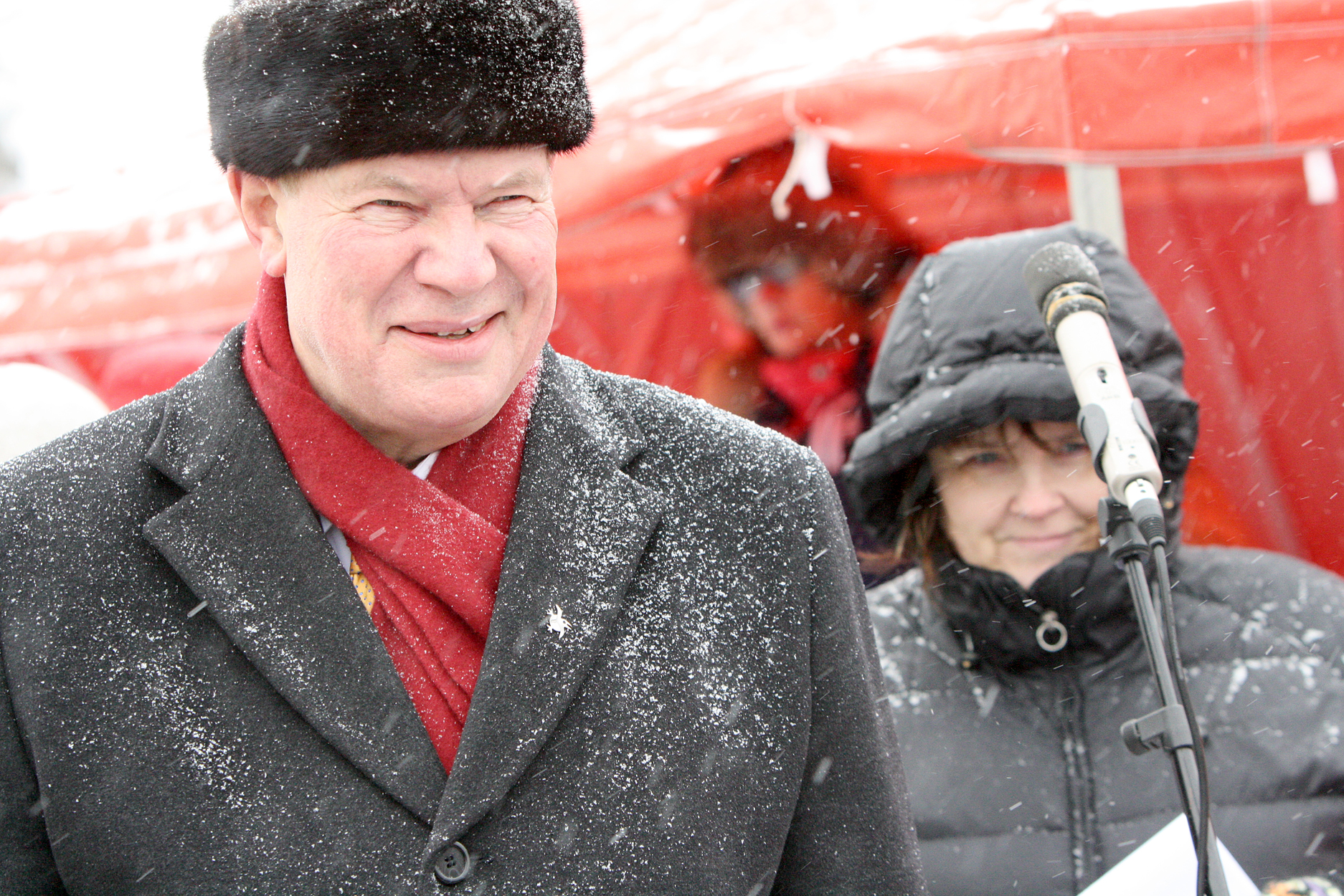 Där ett stycke från ”Högt bland Saarijärvis moar” av Johan Ludvig Runeberg. Det verkar ha varit kall snålblåst redan då och så var det också i dag då socialdemokraternas presidentkandidat Paavo Lipponen besökte Lovisa. Han verkar vara en hyvens snubbe, bra svenska talar han och kloka saker om tolerans sa han också. Han är välkommen med i mitt album ”Minä ja julkkis” (Jag och kändisen)!