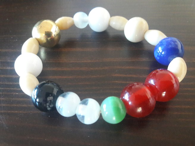 Och så blev jag glatt överraskad av posten i dag också. Jag fick en JULKLAPP, i så här god tid. Armbandet är en Frälsarkrans och jag gillar dess tyngd. Varje pärla har sin betydelse och var och en bestämmer själv hur hon eller han vill använda dem. Råd kom i ett följebrev, men kransen är också kravlös.