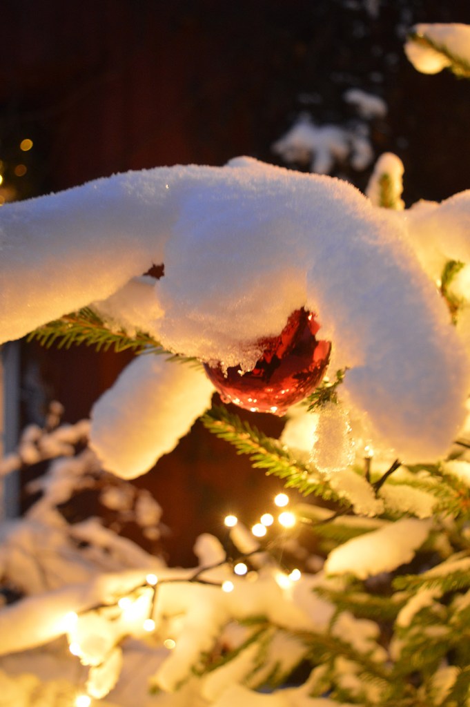 Granen hos Olga och Markku i Kungsdammens julhem. Har du en riktig gran inne hos dig jul?