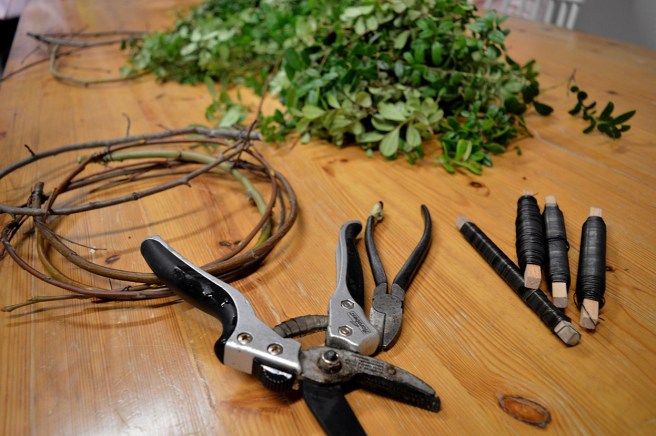 Mycket humor ska man ha för att kunna se det positiva i dagens väder. Jag knatade iväg till jobbet, som i dag gick ut på att öppna dörren till Nya Östis utrymme för kransbindningskursen för årets luciafölje.